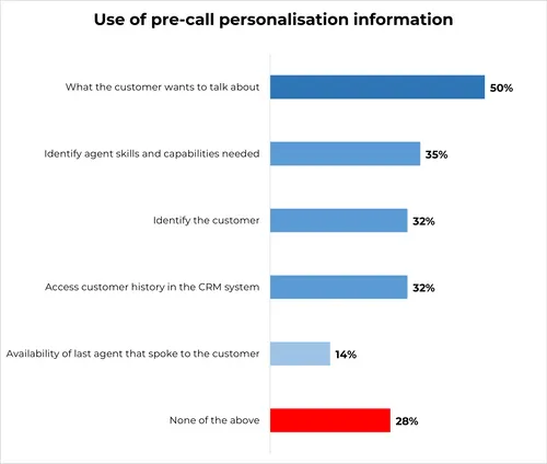 Only a minority even identify the customer fully pre-call, and very few try to find the agent who last spoke to them. More than one-quarter of contact centres have their agents go into a call with no idea whatsoever who the customer is or what they want to talk about.