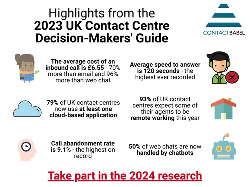 You can receive it for free, along with the detailed "2024 UK Contact Centre HR & Operational Benchmarking" report (which is £375 to non-participants). Findings will be made exclusively available to participants in early December.